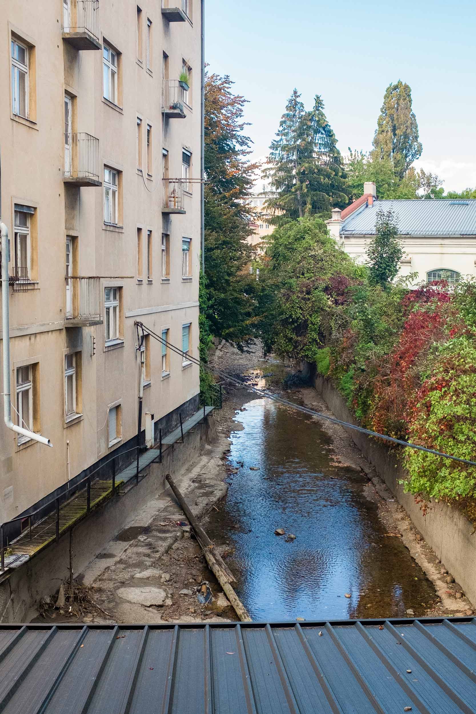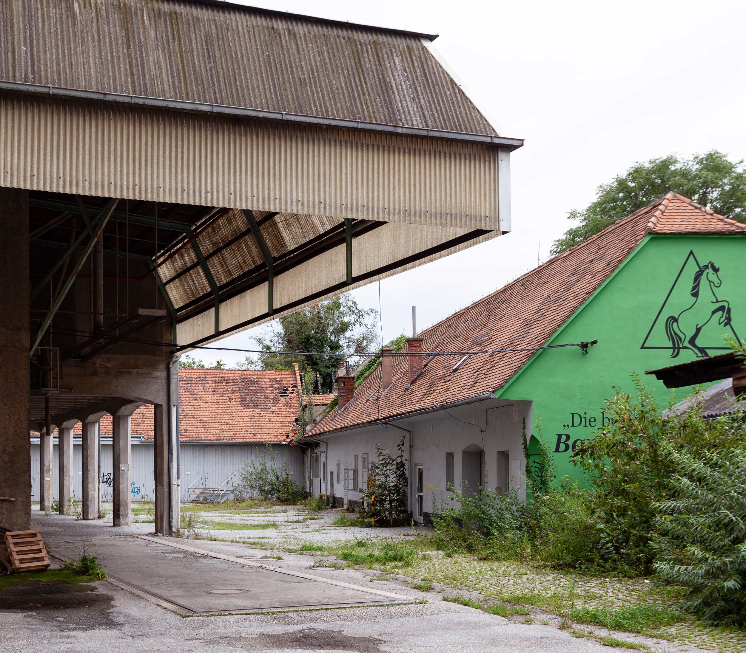 Trotz ihrer immensen Größe und zentralen Lage siehst du immer nur kleine Ausschnitte, versteckt hinter einem Raum, der an der Grenze sein Ende findet. Eingebettet in den städtischen Kontext bildet sie eine Lücke, ein Vakuum zwischen Lebensrealitäten, die sich nicht wirklich begegnen. Die Wohnsiedlung und das Hospiz sind von dem Leerstand getrennt. Allein der Mühlgang fließt stetig hindurch, unterscheidet nicht zwischen den unterschiedlichen Gegenden von Graz. Orte enden hier an der Grenze zur Stille, die sich erst beim näheren Herantreten als Turbinenbrummen, Entenschnattern und Glassplitterknirschen unter den eigenen Füßen entpuppt.