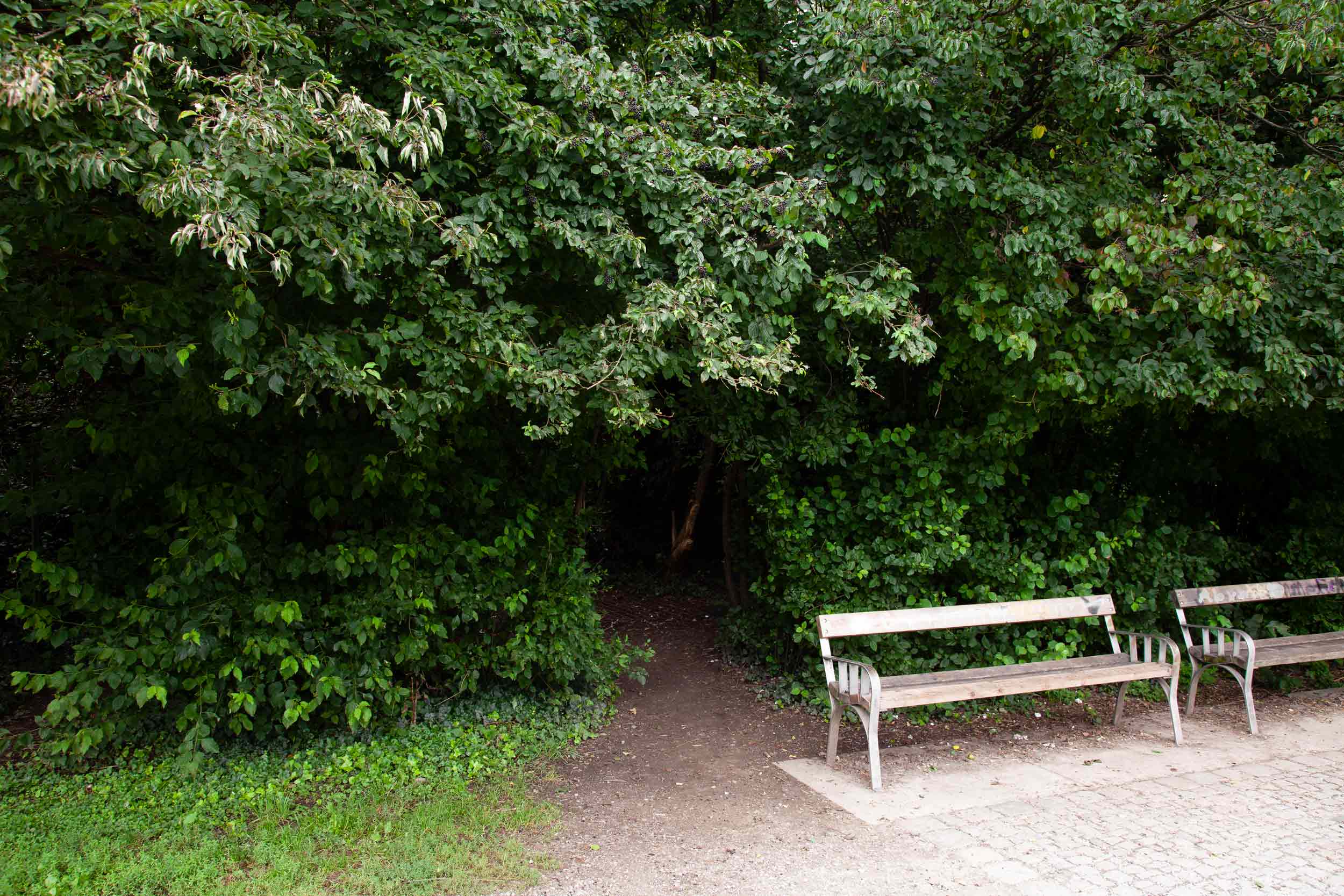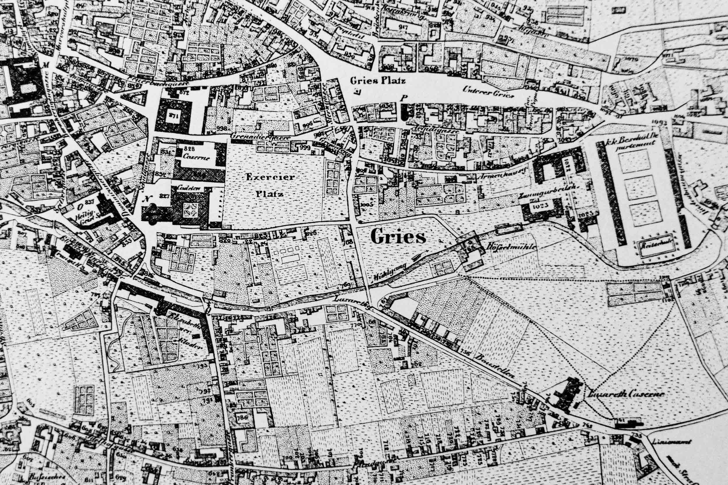 Die Mühle war noch verschlossen. Ein erster Blick fällt durch die Metallstäbe des großen Tores. Im Rücken stehen die aufgeräumten Fassaden einer Wohnsiedlung, die parkenden Autos am Straßenrand davor. Du willst dir ein Bild von dem Ort machen und versuchst das verlassene Industriegebäude zu umrunden. Du gehst die Oeverseegasse an einem Zaun entlang, der ist einige Meter geflickt, dann gepflegt. Du gehst links durch das Tor in einen Park. Vom weitläufigen, ordentlich gestalteten Oeverseepark siehst du die Türme über dichte Bäume ragen. Die Bäume schließen die Grünanlage nordöstlich hinter einer Hundezone ab und verdecken den Rest des Mühlengeländes. Eine kleine Brücke führt über den Mühlgang zum Gelände der „Geriatrischen Gesundheitszentren Graz“, der Zugang wird dir durch ein „wegen Corona“ verschlossenes Tor verwehrt. Den Radius vergrößernd ist es dir möglich, das Gelände von der anderen Seite zu betreten. Du schlängelst dich hindurch, vorbei an den Pflegewohnheimen, Tageszentren, betreuten Wohnformen sowie der Albert Schweitzer Klinik mit Wachkoma-Department, Akutgeriatrie, Remobilisation, medizinischer/palliativer Geriatrie, bis hin zum Hospiz. Durch den Zaun vor dem Hospiz spähst du in den verwilderten Hinterhof der Mühle und du siehst, den Kopf hebend, auch hier die massiven Türme emporragen. Als dann gerade ein Auto das Gelände der Kliniken verlässt, huschst du durch das sonst verschlossene Tor mit hinaus, um den Kreis um das Mühlengelände fortzusetzen. Umgenutzte Industriegebäude stehen hier; alt, massiv, aber nicht verwildert. Zur Mühle nächstgelegen der „AKDAG Supermarkt“, vor dem stetige An- und Abfahrten von Autos sowie ratternde Einkaufswägen einen Parkplatz beleben. Richtig positioniert, entdeckst du auch von hier ein Stückchen Mühle.