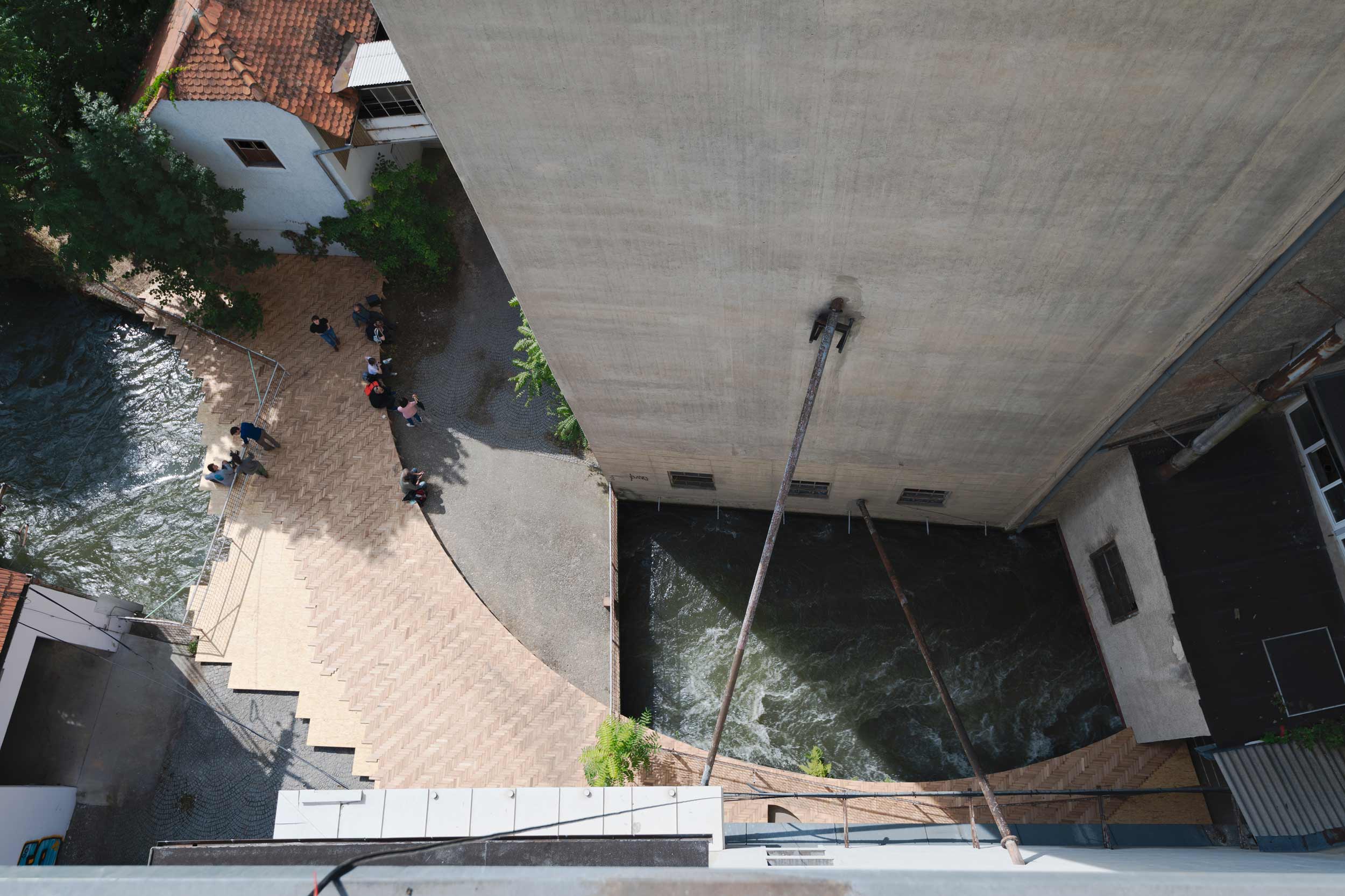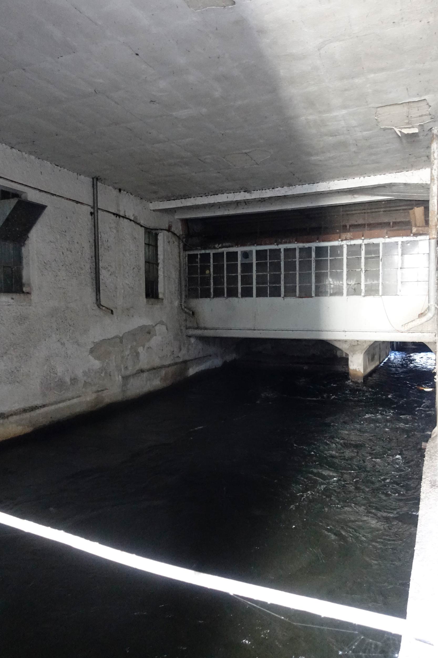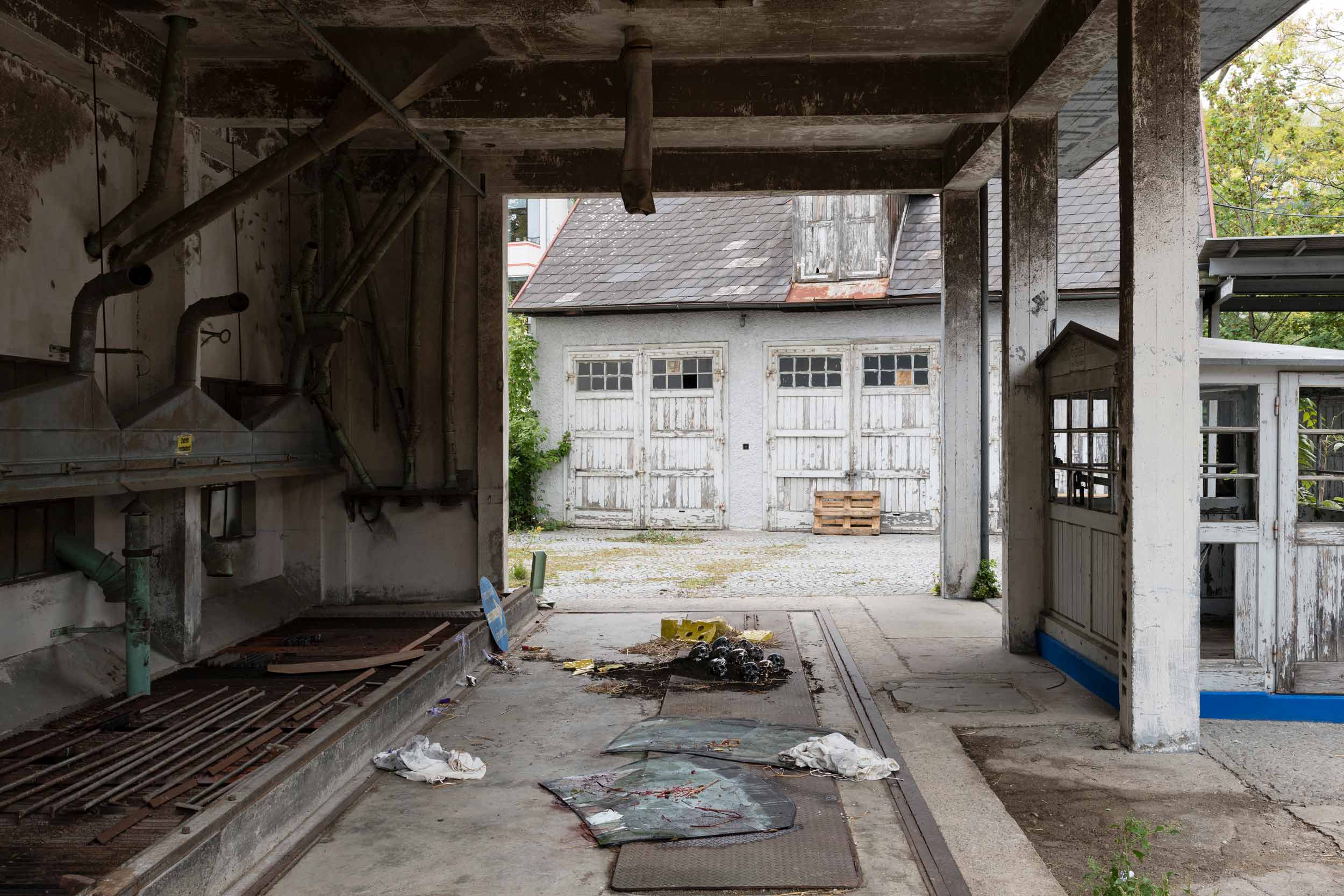 Trotz ihrer immensen Größe und zentralen Lage siehst du immer nur kleine Ausschnitte, versteckt hinter einem Raum, der an der Grenze sein Ende findet. Eingebettet in den städtischen Kontext bildet sie eine Lücke, ein Vakuum zwischen Lebensrealitäten, die sich nicht wirklich begegnen. Die Wohnsiedlung und das Hospiz sind von dem Leerstand getrennt. Allein der Mühlgang fließt stetig hindurch, unterscheidet nicht zwischen den unterschiedlichen Gegenden von Graz. Orte enden hier an der Grenze zur Stille, die sich erst beim näheren Herantreten als Turbinenbrummen, Entenschnattern und Glassplitterknirschen unter den eigenen Füßen entpuppt.