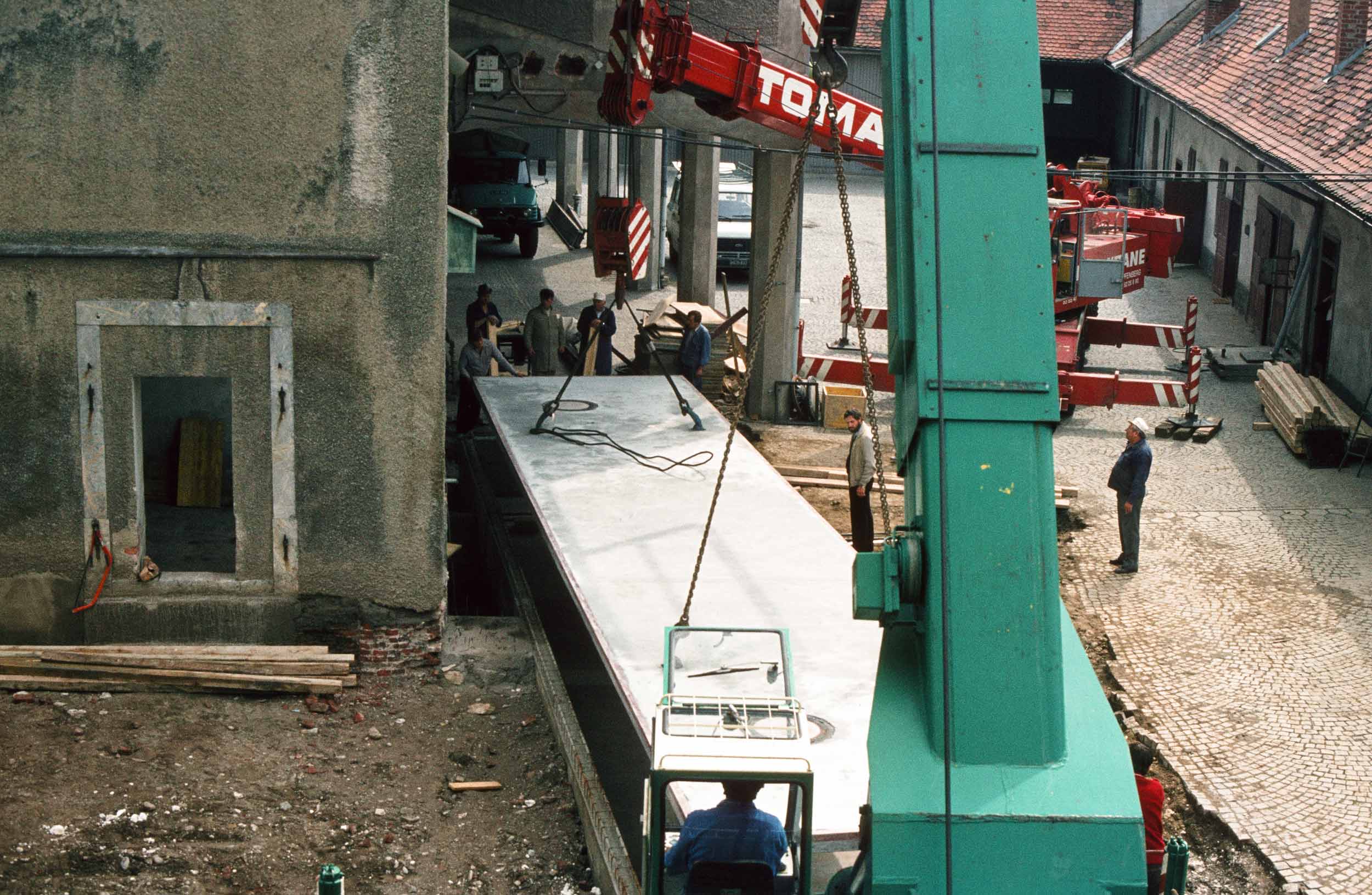 Lange schon stand die Rösselmühle an diesem Ort[2]. Der Mühlgang[61]konnte das Mühlrad leicht drehenKorn wurde zu Mehl[21]gemahlen und mit der Zeit erweiterte und verbesserte man Gebäude[18]und Technik[19]. Doch nach vielen, vielen Jahren wurde die Mühle den Anforderungen der modernen Mehlproduktion nicht mehr gerecht. Man befand sie für nutzlos, entschied, ihr Inneres[43]zu verkaufen[44]und die Produktion an einen anderen Ort zu verlagern. Während man nun das Rösselmehl anderwärts in größerer Effizienz produzierte, wurde die Rösselmühle ruhig und die direkten Nachbarn beschwerten sich nicht darüber. Leere Gebäude stehen noch, doch ihre Bedeutung als Mühle verwischt, verfällt, stürzt ein. Als Mühle ist sie nutzlos. Das Gebäude ein Pflegefall. Wann ist die Mühle keine Mühle mehr?